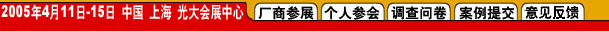 展覽大廳開放時間:2005年4月13日1:30pm —— 4月15日 03:30pm 注:以上日程內容,將根據參展廠商提交資料的進展情況隨時更新,敬請留意。