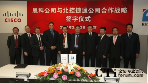 CTI論壇(ctiforum)3月23日消息(記者 潘婷婷):2010年3月22日,北京——北控捷通(北京)科技發(fā)展有限公司(以下簡稱“北控捷通”)與思科今天正式簽署合作備忘錄,雙方將在教育行業(yè)通信技術(shù)發(fā)展方面展開更加深入的合作。在合作中,思科將提供統(tǒng)一通信和統(tǒng)一計算解決方案,與北控捷通一起共同推動IP平臺技術(shù)在教育行業(yè)中的應(yīng)用、推廣和標(biāo)準(zhǔn)化。同時,此次合作也使北控捷通成為思科在教育行業(yè)優(yōu)先推廣應(yīng)用解決方案的合作伙伴之一。