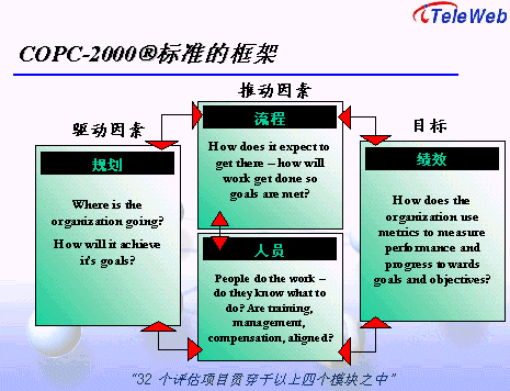 COPC-2000®標準提供呼叫中心規(guī)劃與領導、流程管理、人員管理、績效考核四大類32項指標的評估基準,內(nèi)容涵蓋財務成本、客戶滿意度、客戶投訴、服務與質(zhì)量、組織結(jié)構(gòu)、人力資源運用、員工考核及士氣等呼叫中心管理的所有方面。具體架構(gòu)見下圖。