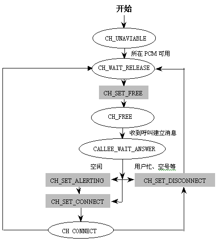 東進(jìn)isdn卡與E1卡編程上最大 的區(qū)別是他的信令控制上,也就是系統(tǒng)在摘掛機(jī)上控制上的不同。以下是中繼通道狀態(tài)的躍遷