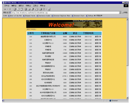 訂購單查閱可以使用戶隨時都能查看以前和現(xiàn)在的訂購記錄,并且可以查詢訂單的詳細(xì)信息。對于尚未確認(rèn)的訂購單和退貨單,可以在此確認(rèn)或刪除。