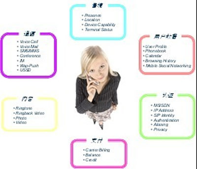 三是開(kāi)放電信能力,運(yùn)營(yíng)商手里有很多得天獨(dú)厚的資源,如SMS、MMS、語(yǔ)音等可靠的通信服務(wù),用戶數(shù)據(jù),情境,認(rèn)證等。這些是運(yùn)營(yíng)商獨(dú)有的資源,在此基礎(chǔ)上開(kāi)發(fā)出來(lái)的應(yīng)用也是獨(dú)一無(wú)二的。