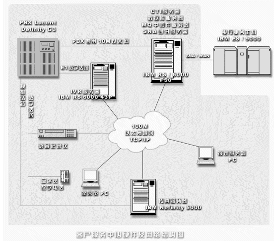 由銀證公司與IBM公司聯(lián)合開發(fā)的大規(guī)模銀行客戶服務中心系統(tǒng)。該系統(tǒng)基于朗訊DEFINITY程控交換機和IBM客戶服務系統(tǒng)開發(fā)平臺,開通200外線,120線電話銀行自動應答,50線人工座席服務和12路傳真服務。