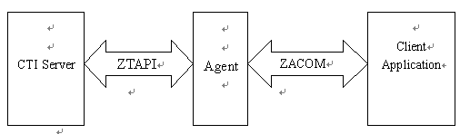 通常呼叫中心的座席軟件都需要用戶定制,以便在標(biāo)準(zhǔn)的座席功能上加入業(yè)務(wù)處理功能,并且要求能與業(yè)務(wù)系統(tǒng)交換數(shù)據(jù)。用戶可以利用ZTAPI接口直接定制自己的座席軟件,也可以使用Agent軟件自帶的COM開(kāi)發(fā)接口來(lái)實(shí)現(xiàn)同樣的功能。后者是一種更便捷的機(jī)制,因?yàn)榭梢灾苯邮褂肸ingServ®標(biāo)準(zhǔn)的座席軟件--Agent的座席功能,用戶可以把更多的精力投入到業(yè)務(wù)處理功能,使用ZACOM要求使用時(shí)需運(yùn)行Agent軟件。ZACOM開(kāi)發(fā)結(jié)構(gòu)示意圖如下: