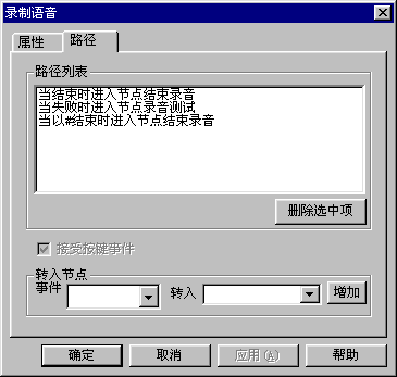 · 超時 // 例如,播放完語音后都要設(shè)置一段等待時間,在這段時間內(nèi)用戶沒有輸入觸發(fā)節(jié)點跳轉(zhuǎn)的按鍵,就被認(rèn)為是超時。