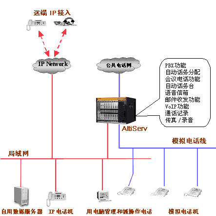 那么選擇奧迪堅的Altiserv直接構(gòu)建網(wǎng)絡電話系統(tǒng)是您一步到位的理想選擇。 用很少的投資搭建一個以Altiserv為中心的網(wǎng)絡電話系統(tǒng)可以基本滿足企業(yè)的辦公, 數(shù)字、語音及多媒體通訊的全方位需求。而且隨著您企業(yè)的不斷發(fā)展壯大,奧迪堅隨時可為您增加任何您所需的功能。