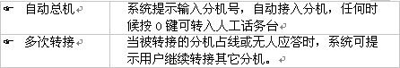 若您要的分機(jī)正在忙或分機(jī)主人不在電話機(jī)旁,可直接轉(zhuǎn)到留言信箱,止項(xiàng)功能要求在交換機(jī)數(shù)據(jù)庫中設(shè)置分機(jī)遇忙/無應(yīng)答轉(zhuǎn)移到留言信箱。