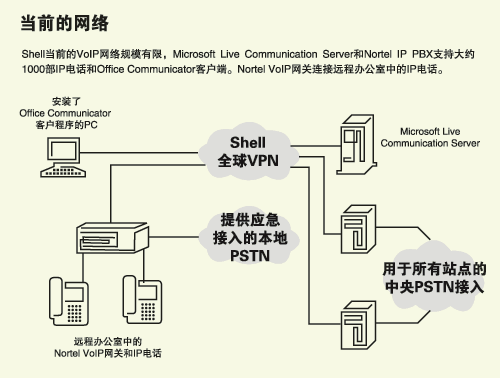 過去購(gòu)買和部署系統(tǒng)一直由本地Shell辦事處和子公司做出決定。這就使Shell公司內(nèi)部的通信系統(tǒng)變得五花八門,難以駕馭。而集中式VoIP系統(tǒng)將避免這樣的作法。