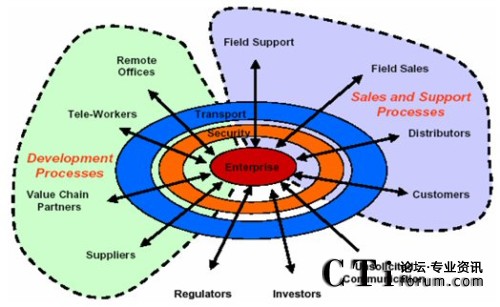 不同公司,生辰八字不同,發(fā)家史不同,決定了企業(yè)利益戰(zhàn)略點(diǎn)的不同,對(duì)統(tǒng)一通信的市場(chǎng)切入點(diǎn)和定位目標(biāo)就存在一些差異。軟件商采用以桌面軟件為基礎(chǔ),從上往下滲透的策略,設(shè)備商采用從基礎(chǔ)架構(gòu)出發(fā),從下往上突破的策略,但對(duì)統(tǒng)一通信的基本認(rèn)識(shí)可統(tǒng)歸為:以用戶為中心,實(shí)現(xiàn)跨時(shí)空的無限溝通。這里拋棄了網(wǎng)絡(luò)、終端、融合、平臺(tái)等技術(shù)層面的東西,而是完全從業(yè)務(wù)層面迎合了企業(yè)客戶的基本需求,企業(yè)聽到了自然心動(dòng)!耙赂幌刃蘼贰保髽I(yè)要發(fā)展,就必須先修好這條通信大道。從中,我們也可看出統(tǒng)一通信不是一種技術(shù),也不是一項(xiàng)應(yīng)用,而是一種需求、一種企業(yè)對(duì)網(wǎng)絡(luò)、通信技術(shù)成熟發(fā)展之后的需求滿足的期望。此外,通過對(duì)這些主要廠家的UC解決方案進(jìn)行分析,也可以發(fā)現(xiàn),無論大家的口號(hào)怎樣,PPT里的網(wǎng)絡(luò)架構(gòu)如何多變,卻一致地采用SIP協(xié)議進(jìn)行會(huì)話控制,用IP協(xié)議進(jìn)行數(shù)據(jù)傳輸,通過應(yīng)用服務(wù)器(或類似網(wǎng)元)提供各種統(tǒng)一通信功能。