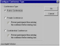 TeleConference系統(tǒng)內(nèi)的任一個(gè)分機(jī),都可以利用瀏覽器(Internet Browser)來預(yù)約會(huì)議時(shí)間,而參加會(huì)議的人可以在會(huì)議開始時(shí),自動(dòng)打電話進(jìn)系統(tǒng)參加會(huì)議就像加入“聊天室“一樣簡單。