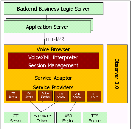 。。由于采用VoiceXML技術(shù),VoiceServer實現(xiàn)電話服務(wù)功能和業(yè)務(wù)處理功能徹底分離,用戶在基于Voice