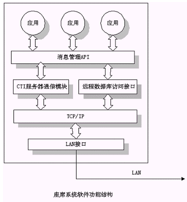 人工座席子系統(tǒng)是人工信息查詢子系統(tǒng),由業(yè)務(wù)代表、耳機/話務(wù)盒、運行Windows系統(tǒng)的PC微機以及相應(yīng)的具體業(yè)務(wù)處理應(yīng)用軟件等組成。耳機主要用于與客戶通話,PC機主要用于記錄客戶基本信息或服務(wù)信息,或是用于檢索客戶所需的業(yè)務(wù)信息。