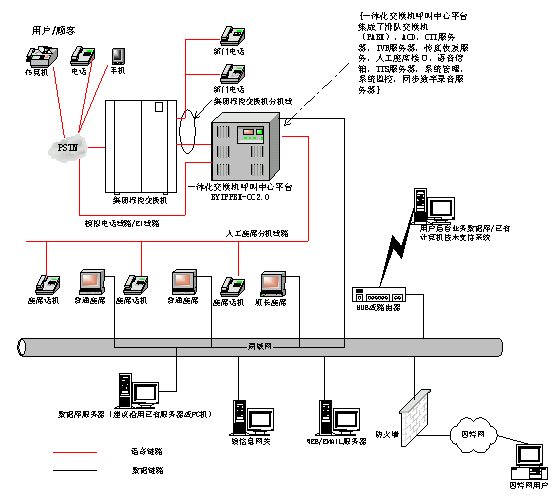 基于博宇科技一體化交換機呼叫中心平臺產品BYIPPBX-CC2.0的長安鈴木公司客戶服務中心系統網絡結構