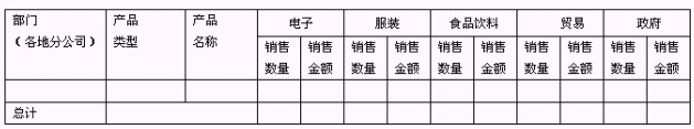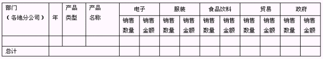 作為分公司銷售經(jīng)理,需要查看分公司每個(gè)銷售員的銷量統(tǒng)計(jì),便于向銷售總監(jiān)做好匯報(bào),需要同時(shí)知道不同產(chǎn)品類型的銷量?梢酝ㄟ^分組報(bào)表來實(shí)現(xiàn),如下圖:
