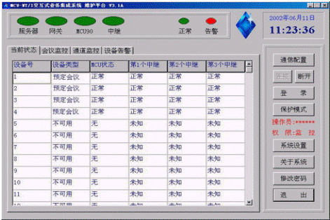 狀態(tài)監(jiān)視:會議秘書可以監(jiān)視每個會議成員的當(dāng)前狀態(tài)。如:空閑、呼叫遇忙、正在振鈴、取機(jī)應(yīng)答、呼入等待、正在通話等狀態(tài)。各種狀態(tài)以不同的顏色顯示在會議控制臺上。