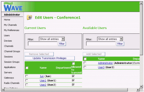 WAVE的使用方式為:管理員在服務(wù)器端建立IP電話會議,參加者使用本地計算機作為客戶端,通過耳機和麥克風(fēng)即可加入會議。一臺普通的奔四PC機可以支持?jǐn)?shù)千個會議,每個會議也允許數(shù)百個用戶參加。管理員可以分配用戶不同的權(quán)利:如講話,主持會議等等。