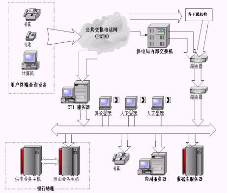 (3)自動轉人工服務。系統(tǒng)還可自動轉接人工坐席,由電力專業(yè)人員負責解答和處理客戶意見;蛘邔⒖蛻舴⻊罩行南到y(tǒng)與后臺數(shù)據(jù)庫服務器相接,通過客戶提供的相關信息,為客戶提供個性化的在線服務。