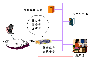 該系統(tǒng)采用微機板卡方案,在實現(xiàn)常規(guī)功能的同時與當?shù)氐慕鸷贽k公網(wǎng)建立物理聯(lián)接,充分利用已有網(wǎng)絡(luò)資源并尊重客戶原有業(yè)務(wù)習慣及流程。