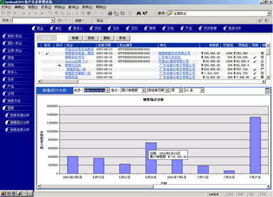 圖3下半部分的圖表是對上半部分的記錄進行表現;上半部分的記錄,是根據一定的條件篩選出來的。在圖表中,可以選擇一些常用的參數,如是全部公司的、還是某個分支機構的、還是某個銷售代表的……