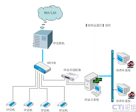 【瑞明達(dá)通信】是國(guó)內(nèi)較早從事專業(yè)計(jì)算機(jī)電話語(yǔ)音系統(tǒng)(CTI)產(chǎn)品的開(kāi)發(fā)商, 在客戶交互式解決方案行業(yè)中有十多年的從業(yè)經(jīng)驗(yàn),具備雄厚的語(yǔ)音產(chǎn)品開(kāi)發(fā)能力。最近幾年,基于 IP 的下一代通信,正在以前所未有的速度改變著全世界的通信架構(gòu)和商業(yè)格局。【瑞明達(dá)通信】作為錄音技術(shù)的領(lǐng)先廠商,就已經(jīng)具有前瞻性的潛心致力于基于IP通訊線路的多媒體記錄解決方案的研發(fā),RMD_VoIPlog錄音系統(tǒng)是由【瑞明達(dá)通信】自行開(kāi)發(fā)研制的新一代IP錄音系統(tǒng)。該系統(tǒng)在記錄VoIP語(yǔ)音的同時(shí),所需的語(yǔ)音資源通過(guò)軟件方式或硬件平臺(tái)直接由網(wǎng)絡(luò)中的RTP等數(shù)據(jù)流獲取,無(wú)須和座席分機(jī)或中繼線進(jìn)行并接,因此是一種軟件/硬件分別實(shí)現(xiàn)的錄音系統(tǒng),是真正的基于IP 的錄音解決方案。RMD_VoIPlog錄音系統(tǒng),是以數(shù)字記錄、數(shù)據(jù)庫(kù)查詢、光盤存儲(chǔ)等先進(jìn)技術(shù)為手段,為通話語(yǔ)音的錄制、管理提供了一種先進(jìn)、科學(xué)而又行之有效的方法。二、RMD_VoIPlog錄音系統(tǒng)運(yùn)行環(huán)境