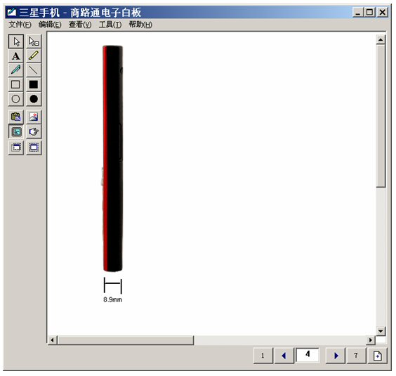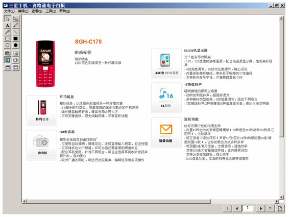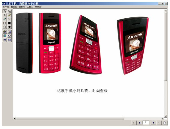 坐席進入富媒體知識庫,調(diào)出三星手機,啟動電子白板,將這個畫面推送給客戶。