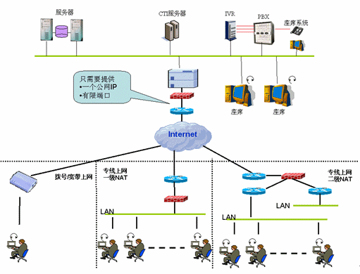 2、限制客戶使用、導致投資浪費——要求客戶的計算機不能在Nat之后,要求客戶的防火墻必須開放389,522,1500,1503,1720,1731端口和UDP的、端口號在10000以上的區(qū)域供其動態(tài)獲取進行視頻和音頻使用,這種要求是大多數(shù)客戶無法做到的,將直接導致大量客戶無法使用ICC功能,造成該功能的空置,無法實現(xiàn)系統(tǒng)的建設目標;