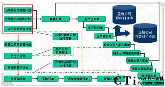 從上圖可以看出,河套酒業(yè)包括股份公司、生產(chǎn)公司、銷售公司、辦事處等獨立核算的實體或分子公司,但是實際上整個供應鏈系統(tǒng)是完全集成在一起的。孤立的解決上述問題,只能帶來重復工作量、公司間相同業(yè)務不一致以及滯后、市場反應不及時等問題。因此跨公司實體,實現(xiàn)銷售計劃、生產(chǎn)計劃、采購計劃三大計劃集成、物流集成是白酒類生產(chǎn)企業(yè)供應鏈系統(tǒng)信息化的關(guān)鍵。