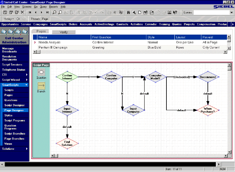 | 圖三. Siebel eMarketing綜合的客戶及市場分析 | 圖四. 使用Siebel eSmartScript工具設(shè)計(jì)市場營銷策略工作流程 |