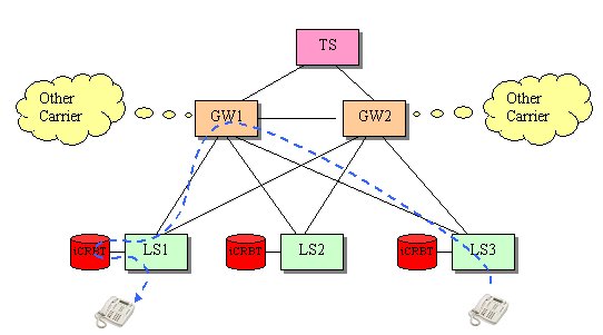 2.   單臺iSX4000交換機(jī)可同時提供多達(dá)64路E1中繼接口,同時支持任意數(shù)量的錄放音設(shè)備(PRD)通過以太網(wǎng)向iSX4000交換機(jī)進(jìn)行彩鈴文件的播放。彩鈴音文件的數(shù)量謹(jǐn)受限于PRD的數(shù)量和PRD的硬盤容量。用一臺普通的流行配置服務(wù)器(RMB12000,2005-3-1)充當(dāng)PRD,可以輕松勝任1千首并發(fā)歌曲的播放。