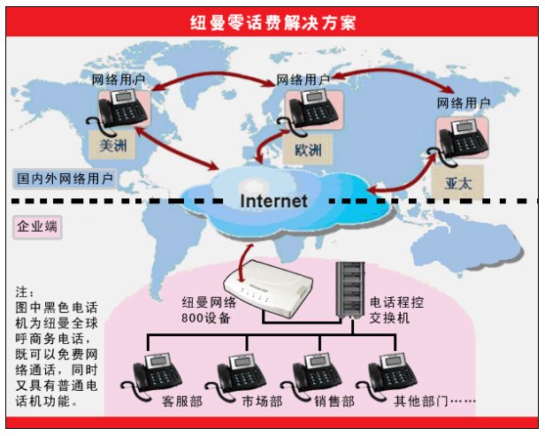 電話通訊技術(shù)發(fā)明以來最震撼的革命——零話費解決方案由紐曼開始,該方案由紐曼全球呼智能商務(wù)電話和網(wǎng)絡(luò)800組成,操作簡單、音質(zhì)清晰,通話雙方用普通電話機實現(xiàn)免費通話。