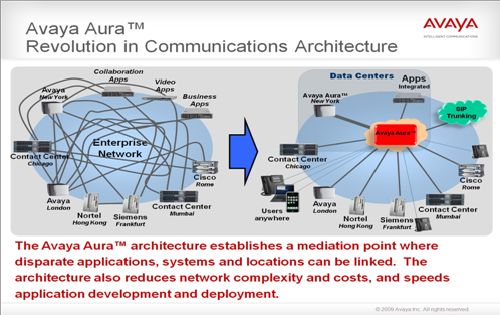 在當(dāng)今經(jīng)濟(jì)形勢(shì)不容樂(lè)觀的背景之下,很多的企業(yè)正在實(shí)施全球的整合,比如說(shuō)一家企業(yè)可能使用Avaya設(shè)備并放在倫敦,香港的北電設(shè)備,和法蘭克福的西門(mén)子設(shè)備,這樣的一個(gè)格局也使得Aura這樣的平臺(tái)能夠帶來(lái)很大的管理便利性。