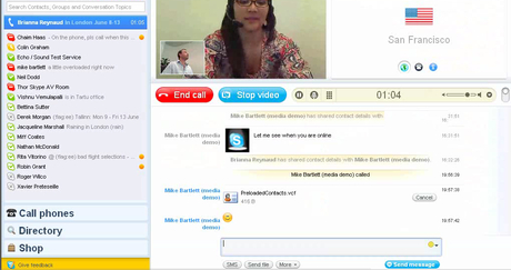 傳統(tǒng)版本可以支持25個(gè)參與者同時(shí)通話(電話會(huì)議),但是在4.0 beta中,只能是一對(duì)一的對(duì)眼聊天了。不過可以允許多方參與,只不過其他人只能聽聲音、寫文字了。這可比不上某些視頻聊天室,可以多人之間進(jìn)行通話,比如Paltalk。