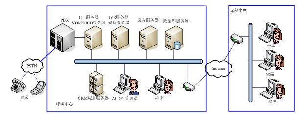 VOM MCD系統(tǒng)是一個獨立于PBX之外的智能路由系統(tǒng),從設(shè)計之初,就采用開放的技術(shù)標(biāo)準(zhǔn)和協(xié)議,支持各種主流的PBX,支持VOIP功能,實現(xiàn)遠(yuǎn)程坐席管理以及分布式呼叫中心的集中管理。
