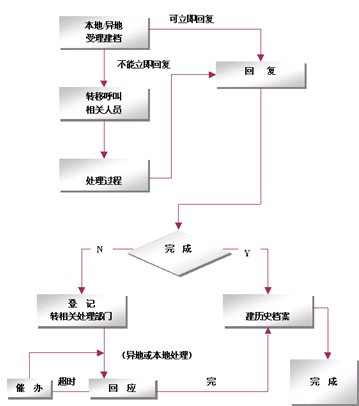 整個網(wǎng)絡采用只在集中受理中心設(shè)立一個集中監(jiān)控系統(tǒng),負責監(jiān)控全網(wǎng)的客戶業(yè)務、服務、技術(shù)支持和投訴等等業(yè)務,該系統(tǒng)基于事件管理的思想,提供包括創(chuàng)建、解決、分配、反饋、跟蹤、回訪等節(jié)點在內(nèi)的閉環(huán)處理模式。例如系統(tǒng)可以根據(jù)客戶反映問題的時間以及緊急程度,按照系統(tǒng)約定的處理時限對處理過程實時跟蹤和記錄,當處理超時時回自動給出報警信息,提示相關(guān)的操作人員及主管人員。同時根據(jù)約定還可以將受理的問題按照約定的方式自動發(fā)送到相關(guān)的處理部門,由處理部門進行處理。