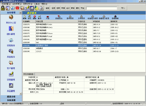 電話(huà)外撥系統(tǒng)(Easyagent),運(yùn)用獨(dú)特的設(shè)計(jì)理念構(gòu)架了整個(gè)系統(tǒng),使得整個(gè)系統(tǒng)的可客制化極大的加強(qiáng)。在無(wú)需改變系統(tǒng)程式的基礎(chǔ)下,系統(tǒng)允許用戶(hù)根據(jù)企業(yè)的實(shí)際情況進(jìn)行客戶(hù)資料數(shù)據(jù)項(xiàng)增加和刪除,并允許對(duì)數(shù)據(jù)項(xiàng)的數(shù)據(jù)類(lèi)型、顯示內(nèi)容、顯示順序和讀寫(xiě)控制的自定義。在系統(tǒng)中所有的客戶(hù)資料分兩級(jí)管理:公司庫(kù)和聯(lián)系人庫(kù)。這種數(shù)據(jù)管理模式有助于資料的統(tǒng)一管理。