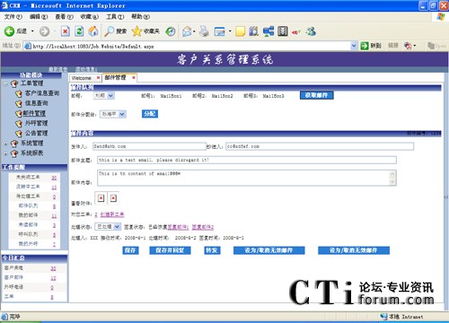系統(tǒng)支持多個郵件隊列的管理,用戶可以根據(jù)業(yè)務(wù)的需要在系統(tǒng)管理中進行郵箱設(shè)置。同時系統(tǒng)也支持多種模式的郵件處理,系統(tǒng)自動分配、組長手動分配以及座席手動獲取,以適應(yīng)不同業(yè)務(wù)的需要。