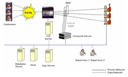 在Voicelink 電話網(wǎng)絡(luò)錄音方案下,語音可以通過每條的電話線獲得并能連接到Voicelink服務(wù)器上。語音將在Voicelink服務(wù)器里被處理,該服務(wù)器內(nèi)裝有語音卡。通過電話“摘機”和“掛機”的動作來啟動錄音和結(jié)束錄音。在TCP/IP的網(wǎng)絡(luò)下,主管可以調(diào)聽錄音并通過登陸到服務(wù)器上進行用戶管理。