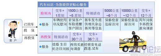 根據(jù)詳細的客戶或交易信息(如生日、性別、愛好、購車記錄、投保記錄等)主動與客戶通過電話、短信等方式,進行客戶回訪、投保到期再保提醒、生日祝福、節(jié)日問候、再保后的關(guān)懷等服務(wù),與客戶建立良好的長期關(guān)系。