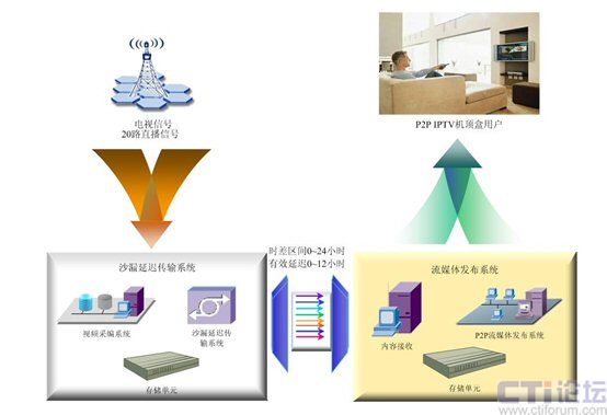 - 延遲時間自由設(shè)置。根據(jù)國家之間時差的不同,傳輸延遲時間可以設(shè)置從3分鐘到24小時的任意時長,真正實(shí)現(xiàn)時移電視。