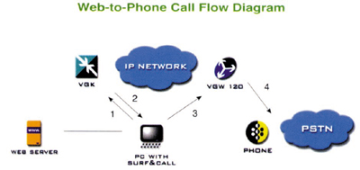 VocalTec公司的網(wǎng)上呼叫(Surf&Call)網(wǎng)絡(luò)客戶軟件5.0(Web Client5.0),可提供語音增值電子商務(wù)服務(wù)以及通過IP網(wǎng)的網(wǎng)絡(luò)到電話呼叫業(yè)務(wù)。Surf&Call是一種面向基于互聯(lián)網(wǎng)電信應(yīng)用的獨(dú)特網(wǎng)絡(luò)軟件,可通過互聯(lián)網(wǎng)使任何網(wǎng)站與普通電話實(shí)現(xiàn)語音連接,是VocalTec整體架構(gòu)的一部分。Surf&Call為網(wǎng)頁提供一個(gè)按鈕,上網(wǎng)者單擊該按鈕,就可與座席通話。在大多數(shù)瀏覽器環(huán)境下,在瀏覽需要利用Surf&Call軟件的頁面時(shí),Surf&Call可自動(dòng)下載和安裝。