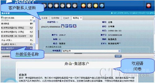 獲取的客戶數(shù)據(jù)便出現(xiàn)在客戶聯(lián)系人資料中,雙擊任一數(shù)據(jù)便可獲取相應(yīng)的客戶具體資料,如所屬的集團(tuán)公司,所在城市,電話號碼等,是坐席對客戶資料瞬間掌握方便外呼服務(wù)。