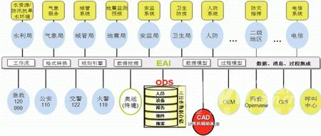 建立在ODS基礎上的ODS+EAI框架為整個公共安全應急指揮系統(tǒng)提供基礎架構(gòu),通過該框架不僅可以交換并緩存數(shù)據(jù)信息,同時可以交換和記錄調(diào)度命令,通過數(shù)據(jù)采集構(gòu)建信息數(shù)據(jù)基礎,記錄并歸檔事件處理過程,維護和利用預案處理過程。同時該框架也為我們建議的本地或遠程OEM系統(tǒng)、甚至是移動的OEM系統(tǒng)提供有力的技術(shù)和數(shù)據(jù)支撐。
