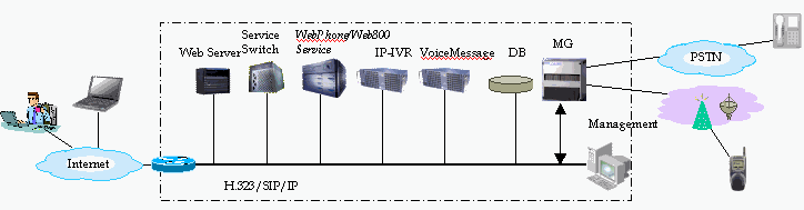 Web800電信級解決方案為電信運營商以ASP的模式運營800業(yè)務提供了良好的解決途徑。該方案要求電信運營商安裝Web800 Server、媒體網(wǎng)關、數(shù)據(jù)庫等系統(tǒng)核心部件、AAA Server,挑選IP IVR等作為可選部件。Web800無需更新原有的系統(tǒng)設施,就可與傳統(tǒng)的800號業(yè)務進行融合;系統(tǒng)在完成遠程的IP網(wǎng)絡傳輸過程后,經(jīng)過IP網(wǎng)關,即接入原有傳統(tǒng)800系統(tǒng),將遠程呼叫擴展為基于Web的呼叫方式,同時又保護電信運營商的原有投資,使之延續(xù)。 該方案具有電信級的高性能指標:同時在線最大人數(shù)為10000人/臺;語音質(zhì)量介于固定電話和移動電話之間;服務器無故障運行時間<5天/年等。系統(tǒng)還具有專門的運營商管理功能,通過Web頁面即可進行系統(tǒng)管理、呼叫記錄統(tǒng)計等。