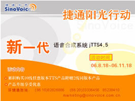 自2006年8月18日,捷通華聲正式發(fā)布新一代語音合成系統(tǒng)jTTS4.5,全面啟動新品上市、回