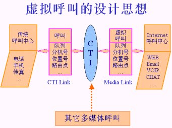 由于有了這種“虛擬呼叫”的技術(shù),CTI平臺(tái)才能夠?qū)?shí)際的電話呼叫和來自Internet的訪問進(jìn)行統(tǒng)一的處理。這是一種完整意義上的將傳統(tǒng)呼叫與Internet訪問完美結(jié)合的設(shè)計(jì)思想。