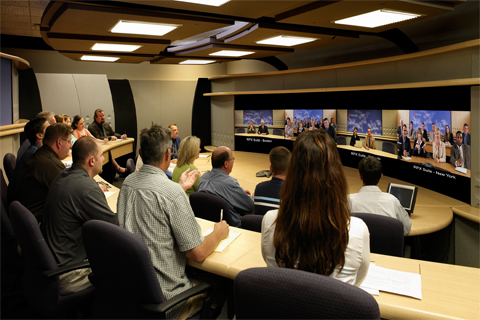 而真正的極致遠(yuǎn)真環(huán)境則是由一組而不是一個攝像頭將遠(yuǎn)端會場多個角度同時拍攝,組合為完整的無拼接畫面;會場顯示系統(tǒng)全景顯示遠(yuǎn)端會場,每個角度與會者均清晰可辨;本地和遠(yuǎn)端渾然一體,仿佛身居同一個會場;這就是寶利通極致遠(yuǎn)真帶給您的當(dāng)今最高效遠(yuǎn)程交流工具,以其獨(dú)特的優(yōu)勢彌補(bǔ)您93%的信息空白。