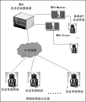 對用戶來說,本方案優(yōu)勢在于:保持原有網(wǎng)絡結(jié)構(gòu)不變,充分利用原有系統(tǒng)設備(包括MCU和終端);保持政府會議繼續(xù)采用專線網(wǎng)絡,安全性、穩(wěn)定性高;使用E1/2M傳輸專線,保證會議的圖像和聲音質(zhì)量;該系統(tǒng)同時支持H.320/H.321/H.323協(xié)議,即可同時采用E1專線,ISDN撥號,IP網(wǎng)、ATM網(wǎng)等方式開會,將來能夠靈活、平滑擴展到各種系統(tǒng)中去,最大地保護了用戶的投資和資源。