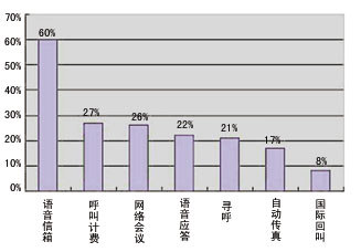 現(xiàn)在常用的辦公交流方式還是以傳統(tǒng)的電話(huà)、互聯(lián)網(wǎng)、電子郵件為主,而Voice Mail的方式卻比較少?梢钥闯,在Voice Mail上還有很大的發(fā)展空間。