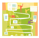 Ussher說她通常見到客戶在兩種情況下采用IP電話:一種是在全新的"綠地"進行安裝,也就是說在公司的新大樓或辦公室,或是一個全部翻新的辦公地點安裝一個完整的新系統(tǒng);另一種是在公司總部保留傳統(tǒng)的PBX網(wǎng)絡,同時為分支機構安裝20到50門IP電話。這兩種策略都把由訪問量過大造成的中斷減到最少,也讓企業(yè)通過在組織內(nèi)部普及IP電話來提高技術、積累經(jīng)驗。