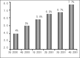在美國的泡沫經(jīng)濟破滅、市場極度低迷的時候,歐洲又傳來第三代無線通信技術——WCDMA因產(chǎn)品、市場等諸多原因全面推遲的消息,這對本來就處于蕭條狀態(tài)的全球通信業(yè)來說,無疑雪上加霜。業(yè)內(nèi)人士在不斷地尋找和探討,究竟什么樣的需求才是目前市場的驅(qū)動力?究竟什么樣的技術才能真正體現(xiàn)市場價值呢?